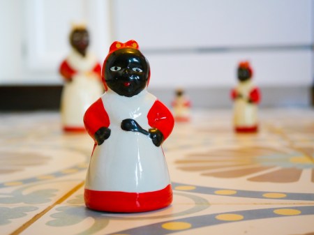 These salt and pepper shakers come from a larger collection of more than fifty sets, representing dozens of ethnic and racial groups that were Dr. Brian Mullen’s. Ultimately the theme of this series is how these little characters interacted with the photographer and the space in her home.